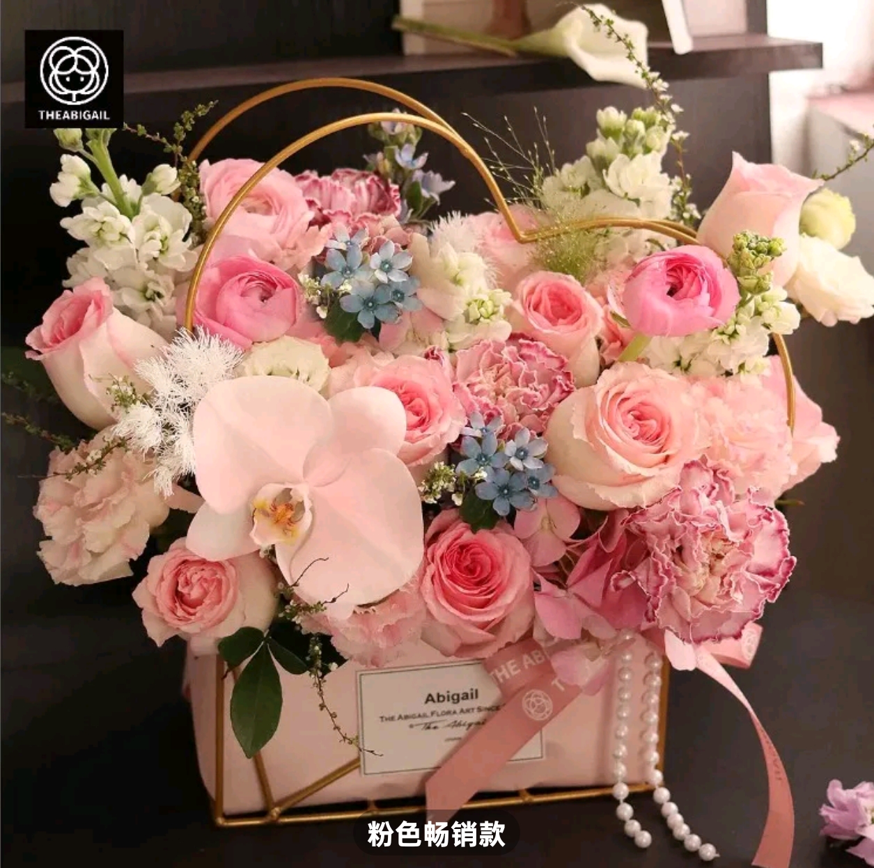 女神节鲜花【为你心动】新中式手提花篮洛神玫瑰紫罗兰蝴蝶兰康乃馨生日送闺蜜送女友领导薄荷曼波